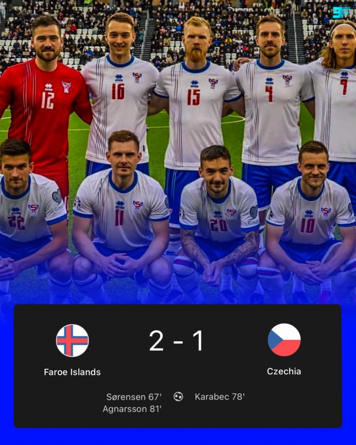 世初赛欧洲区小组赛,天下排行第136的法罗群岛在主场以2-1的比分爆冷降服天下第39的捷克。