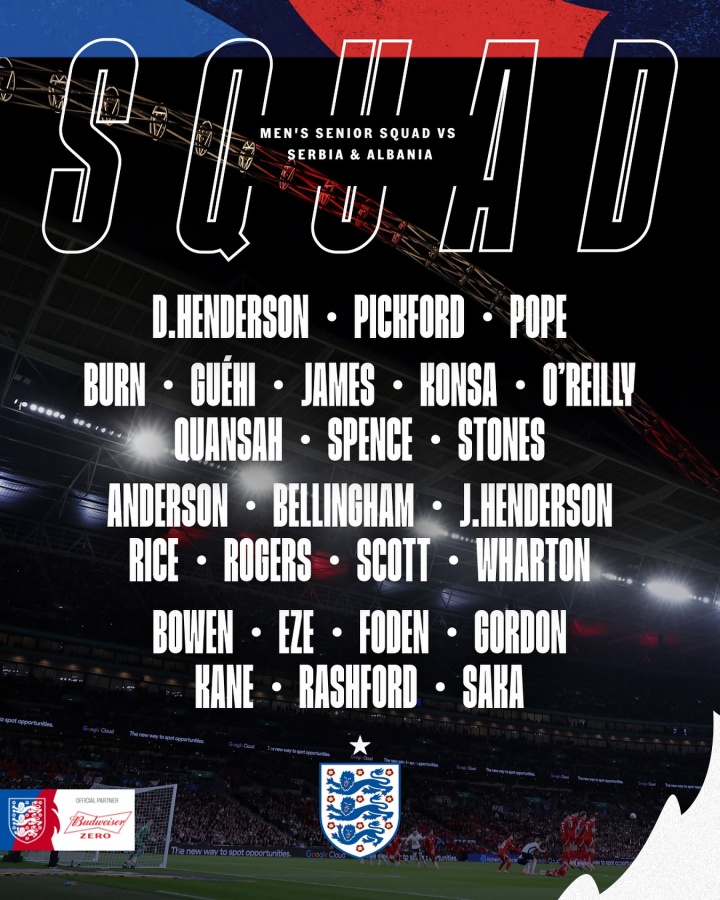 英格兰队公布最新名单备战下周的寰球杯外围赛,他们是欧洲区独一仍是提前出线的球队,6战全胜一球不丢。曼城的少壮奥赖利和伯恩茅斯的后腰斯科特初度入选。三狮军团东谈主员储备最丰富的是前腰位置,再行入选的贝林厄姆与福登将与罗杰斯争夺首发契机,相同擅长踢这个位置的帕尔默当今在养伤。