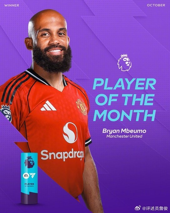 詹俊在社媒写谈:姆伯莫当选为英超10月份最好球员。曼联最近的四轮不败,在关键端他是主要元勋。