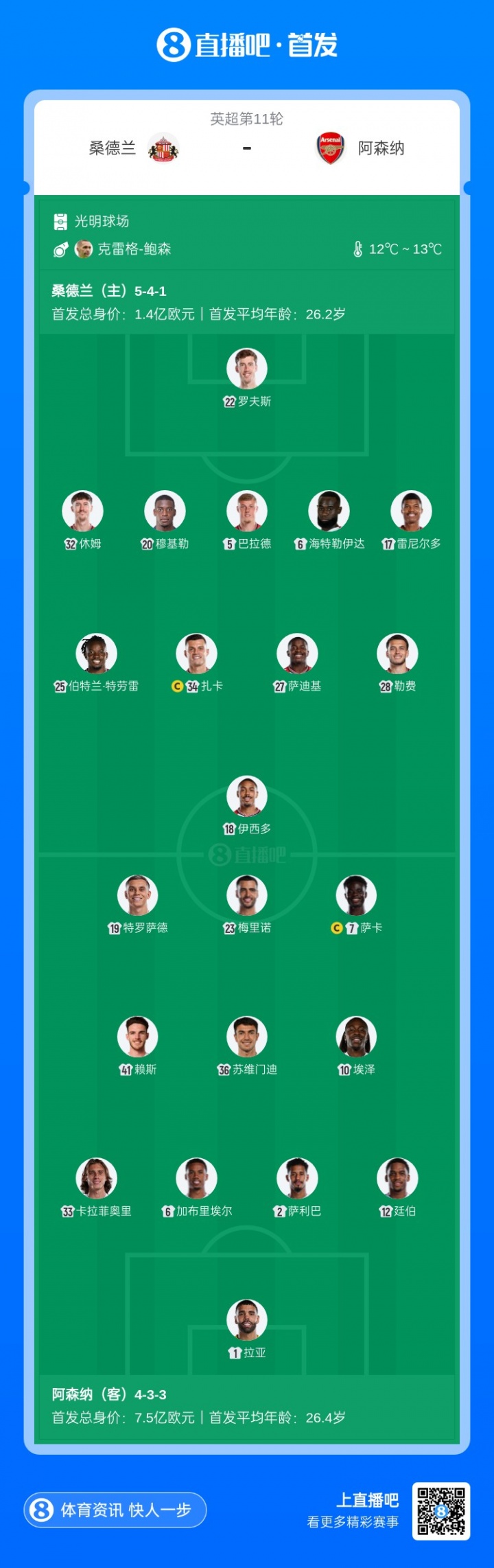 11月09日讯 英超第11轮,阿森纳行将客场对阵桑德兰。