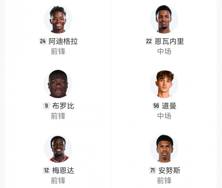 现在,哈弗茨、马杜埃凯、马丁内利、约克雷斯仍处于伤病未愈的现象,热苏斯刚刚转头磨练,枪手一线队时尚仅特罗萨德和萨卡两东谈主健康大约上场,中场梅里诺还客串出任首发中锋。