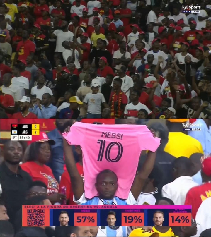 > 降服敌手🤩梅西进球后安哥拉球迷跪拜,下场时安哥拉球迷举球衣