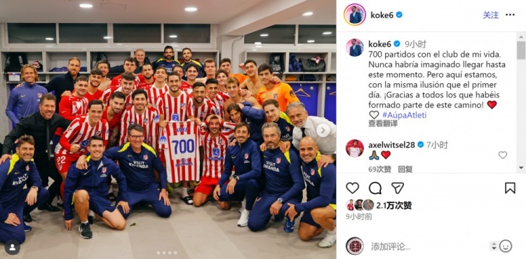 科克社媒晒出手拿700场挂念球衣与全队的合照,配文:“为我一世挚爱的俱乐部出战700场比赛,我从未思过我方能走到这一步,但我作念到了,怀着与第一天疏导的热忱。感谢扫数陪同我走过这段旅程的东说念主。”