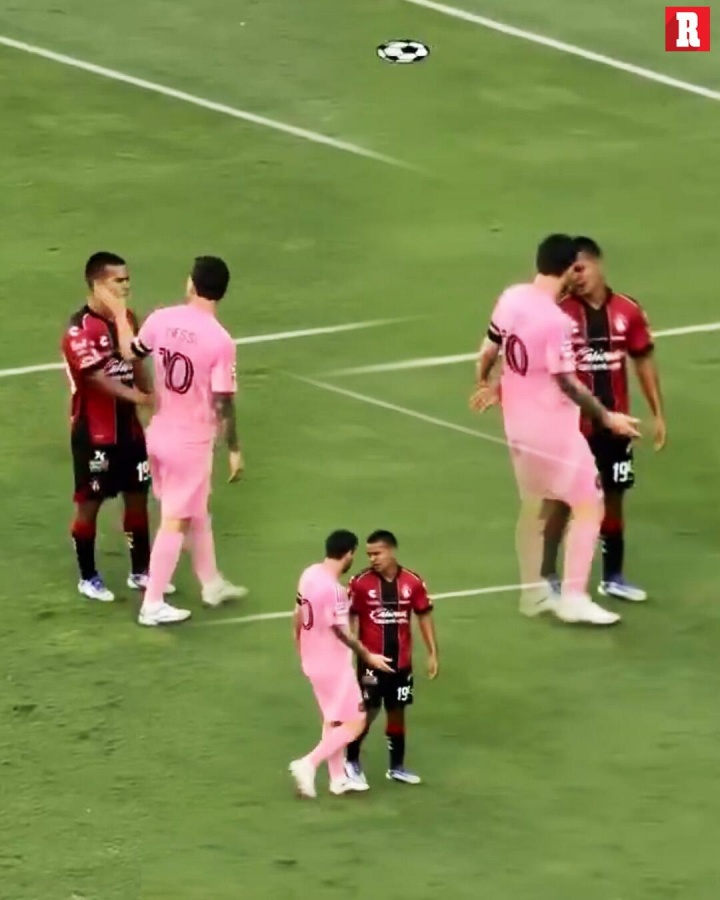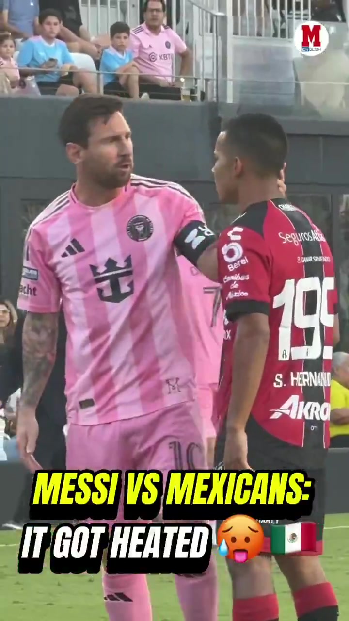 上半场比赛中,梅西被阿特拉斯球员埃尔南德斯犯规,随后与他发生黑白,碰了下对方球员脖子和脸。