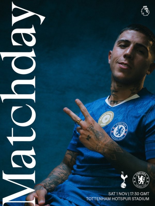 伦敦德比!切尔西发布客战热刺海报:恩佐-费尔南德斯单东说念主出镜