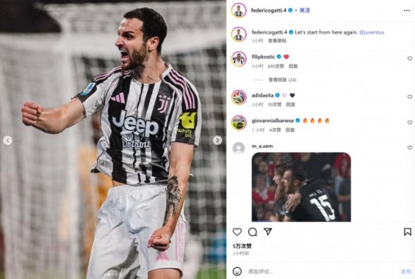 头槌破门止连败!加蒂社媒记念:尤文图斯,让咱们重整旗饱读!