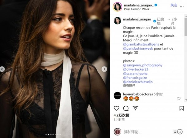 10月5日讯 巴黎中场若昂-内维斯的女友玛达莱娜更新社媒动态,晒出进入巴黎时装周的相片。 玛达莱娜晒出进入巴黎时装周的多张相片,并写说念:“巴黎的每个边缘齐饱和中魅力,我永恒不会健忘这一天。” 玛达莱娜现年20岁,是一位葡萄牙演员。......查看更多