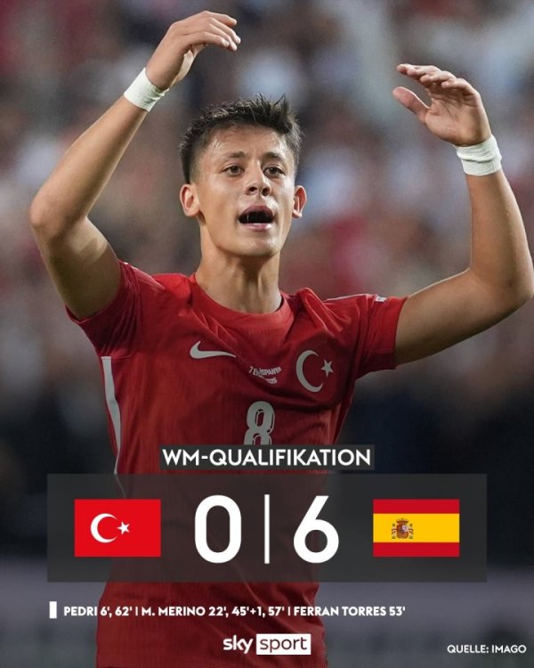 鼻青眼肿😢土耳其寰宇名次27+首发身价2亿,却遭西班牙6球暴打
