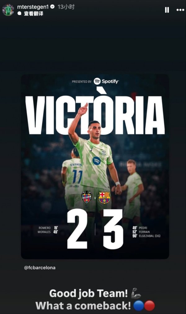 特狮社媒道喜巴萨顺利:干得漂亮!🦾一场精彩的大逆转💙❤️