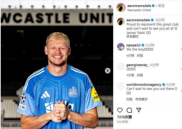 8月4日讯 此前官方讯息,纽卡租出27岁南安普顿门将拉姆斯代尔,租期一个赛季,关于加盟纽卡,拉姆斯代尔在ins上晒图抒发了我方的开心之情。 拉姆斯代尔写说念:“很侥幸简略代表这家伟大的俱乐部出战,迫不足待念念在圣詹姆斯公园球场见到人人! ”......查看更多